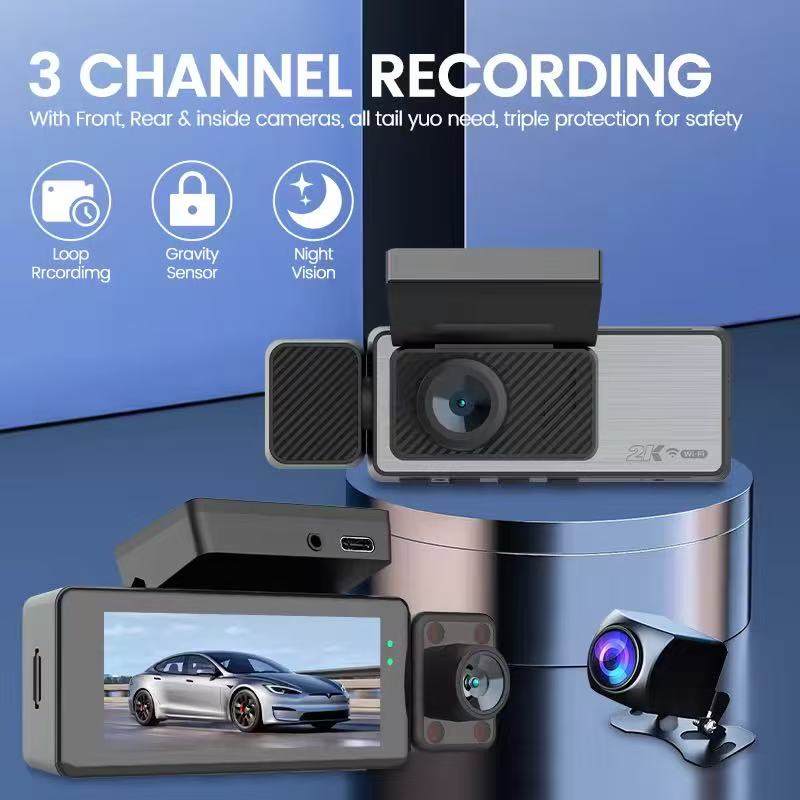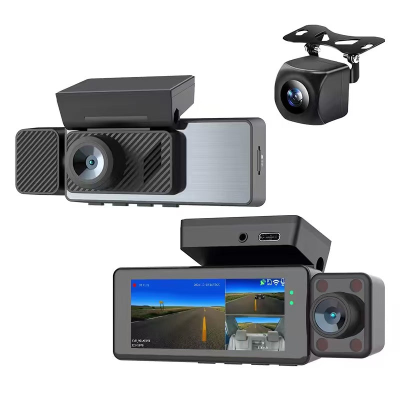 Maustor 3.16 Inch Dashcam Dvr 3 Lens Car Black Box With Front 4K Dash Camera Built in GPS Wifi